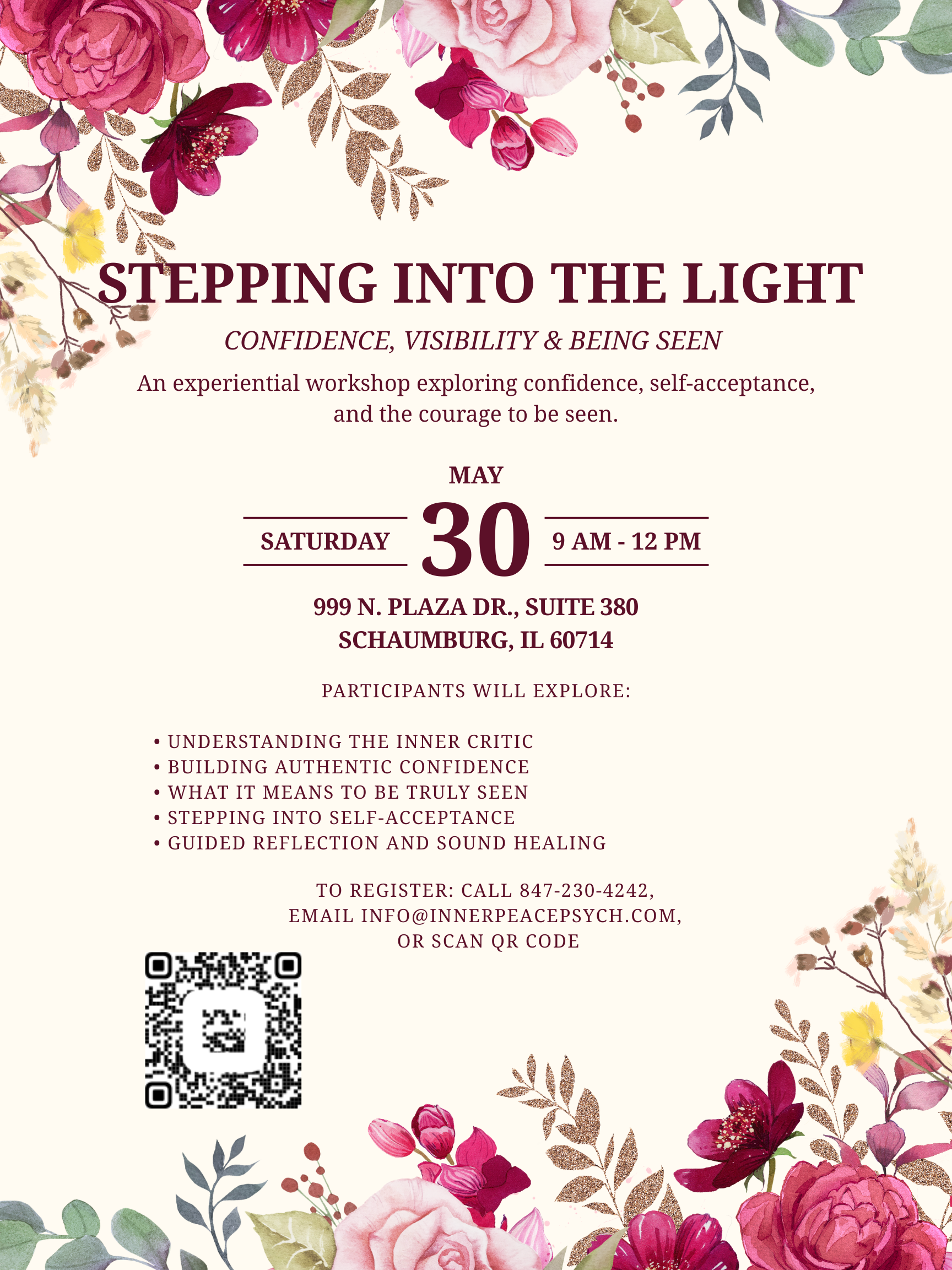 At Inner Peace Psychological Care, healing and growth don’t stop in the therapy room. Our workshops and community events offer meaningful opportunities to reconnect with yourself, explore new skills, and engage in experiences that nurture the mind, body, and spirit.